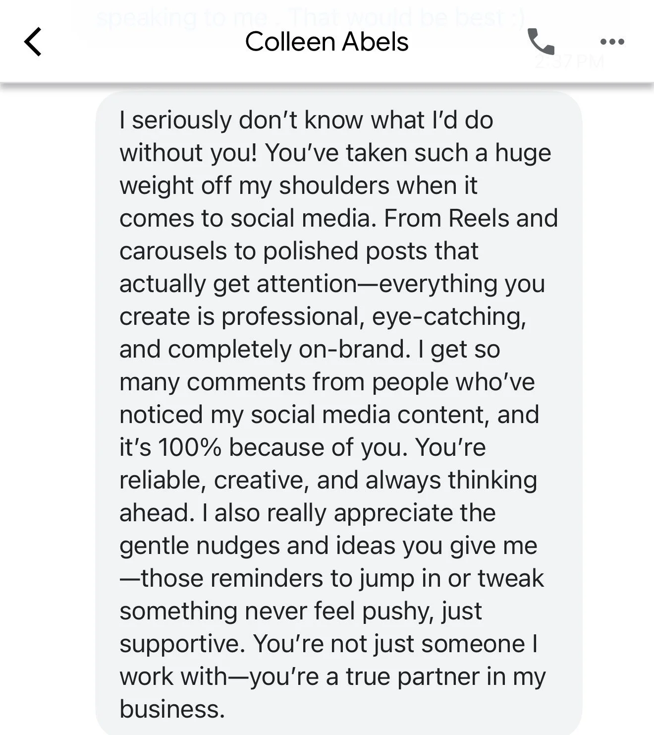 I worked with Bre when I was starting my new business, and she made everything so easy! We talked about a vision, discussed my likes and dislikes, and she ran with it all from there! Could not have been an easier launch for social media presence as business owner!